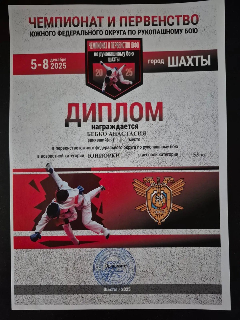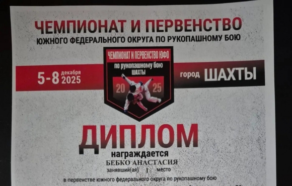 С 5 по 8 декабря 2025 года город Шахты принял масштабное спортивное событие – Чемпионат и Первенство Южного Федерального округа по рукопашному бою. В соревнованиях приняли участие более 800 спортсменов и спортсменок из Ростовской, Волгоградской, Астраханской областей, Республики Калмыкия, Крыма, Севастополя, а также Донецкой и Луганской Народных Республик.