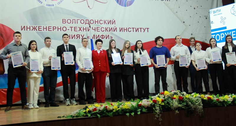 Руководитель ВИТИ НИЯУ МИФИ Валентина Руденко поздравила студентов и преподавательский состав с праздником и вручила сертификаты на получение корпоративных премий и стипендий Концерна «Росэнергатом» пяти лучшим преподавателям вуза и 11 самым успешным студентам. Валентина Анатольевна отметила благодарственными письмами активистов студенческого сообщества ВИТИ НИЯУ МИФИ, которые добились в течение года заметных результатов в различных сферах деятельности – от научных достижений до участия в волонтерском движении.