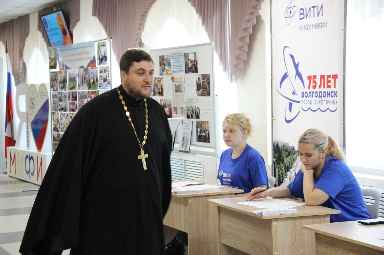 В программе следующего дня форума – Кинопоказ и дискуссия «Фильмы о нравственном выборе», «Отряд светлячков». Его участниками станут студенты ВИТИ НИЯУ МИФИ, преподаватели, Духовенство Волгодонской епархии.