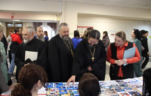 Особая атмосфера широкого масштабного форума царила в вузе буквально со входа, где участников сразу после регистрации ждала выставка-ярмарка просветительских инициатив «Нравственные ориентиры молодёжи: опыт, инициативы, методики».
