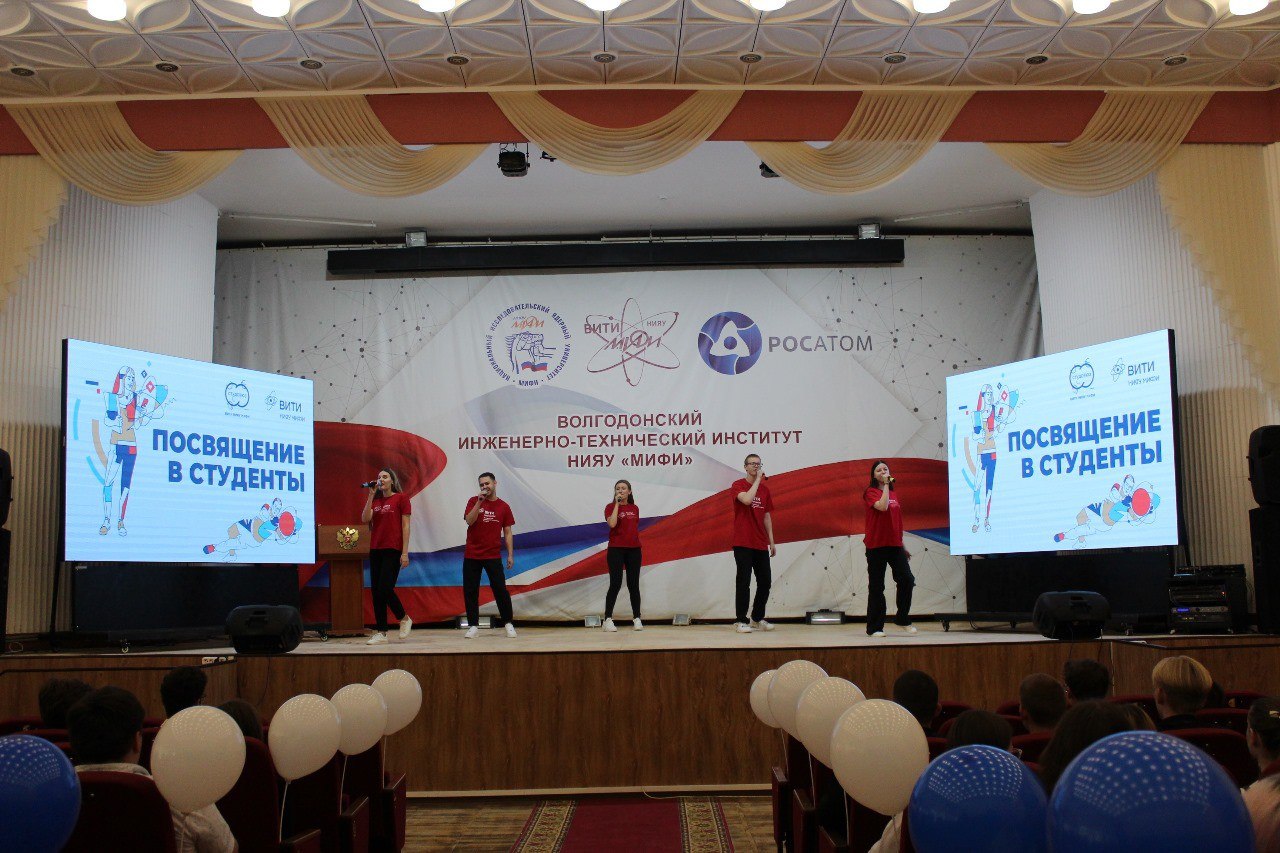 Торжество собрало полный актовый зал: на сцене выступил вокальный ансамбль вуза, задав праздничный тон дня. И первое, что ждало первокурсников – фирменные синие футболки. Это символичный знак: теперь ребята в команде ВИТИ НИЯУ МИФИ.