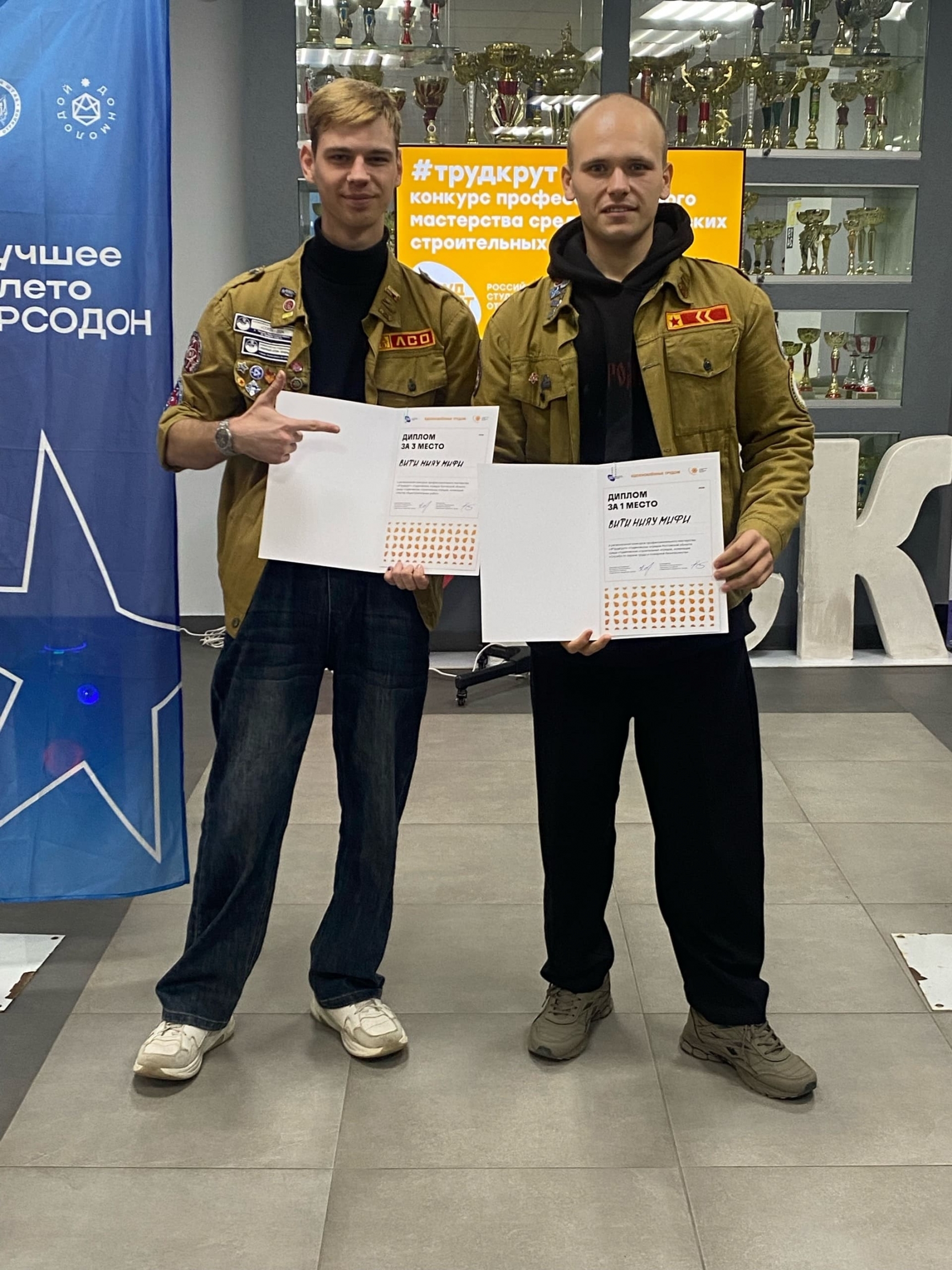- Триумфальное 1 место в компетенции "Служба по охране труда и пожарной безопасности" заняли Кочерга Даниил и Юрченко Антон. Их глубокие знания, четкое понимание процедур и готовность к решению задач в области безопасности стали неоспоримым доказательством их профессионализма. Эта победа подчеркивает важность и актуальность подготовки специалистов по охране труда, особенно в такой ответственной сфере, как строительство.
