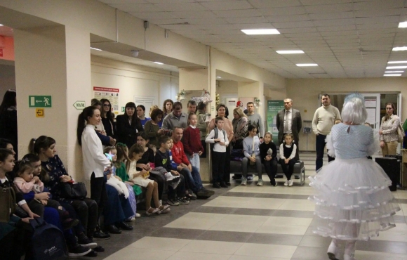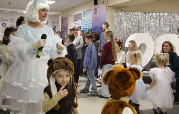 Праздник состоял из двух действий: сначала все дети были приглашены в актовый зал, а затем всем коллективом переместились в холл главного корпуса института – с большой нарядной елочкой, с тематическими фотозонами.