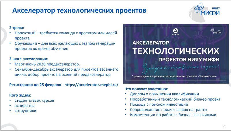 Регистрация до 25 февраля 2026 года: https://accelerator.mephi.ru/