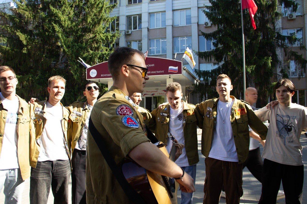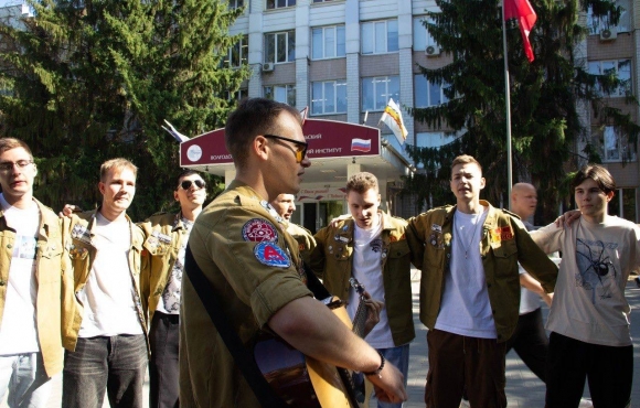 Спевки под гитару, плакаты, музыка и атрибуты бойца, — все это создает атмосферу, в которой первокурсники смогут проникнуться духом строительных отрядов.