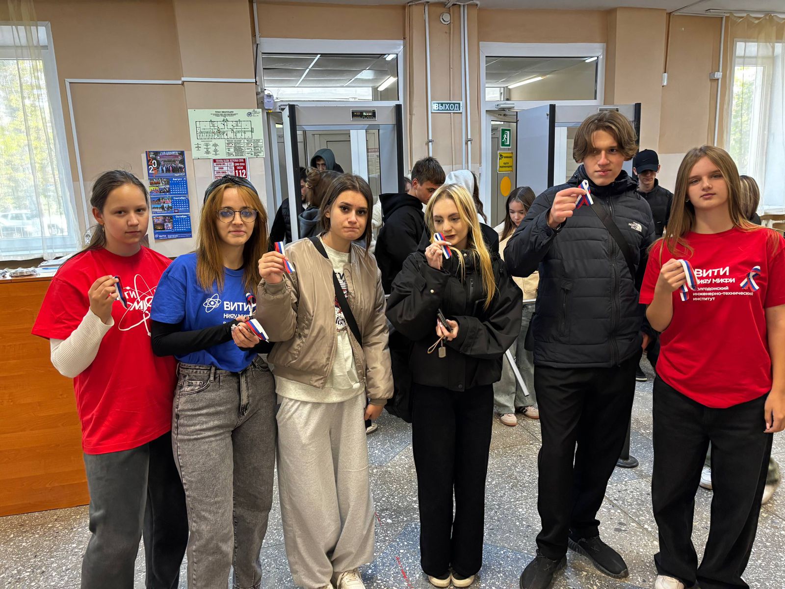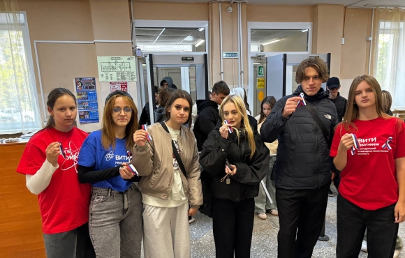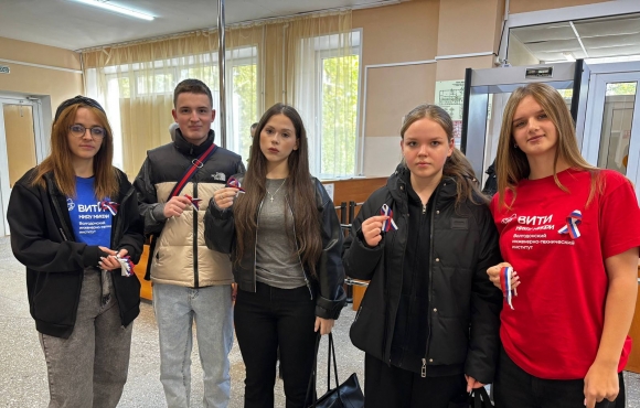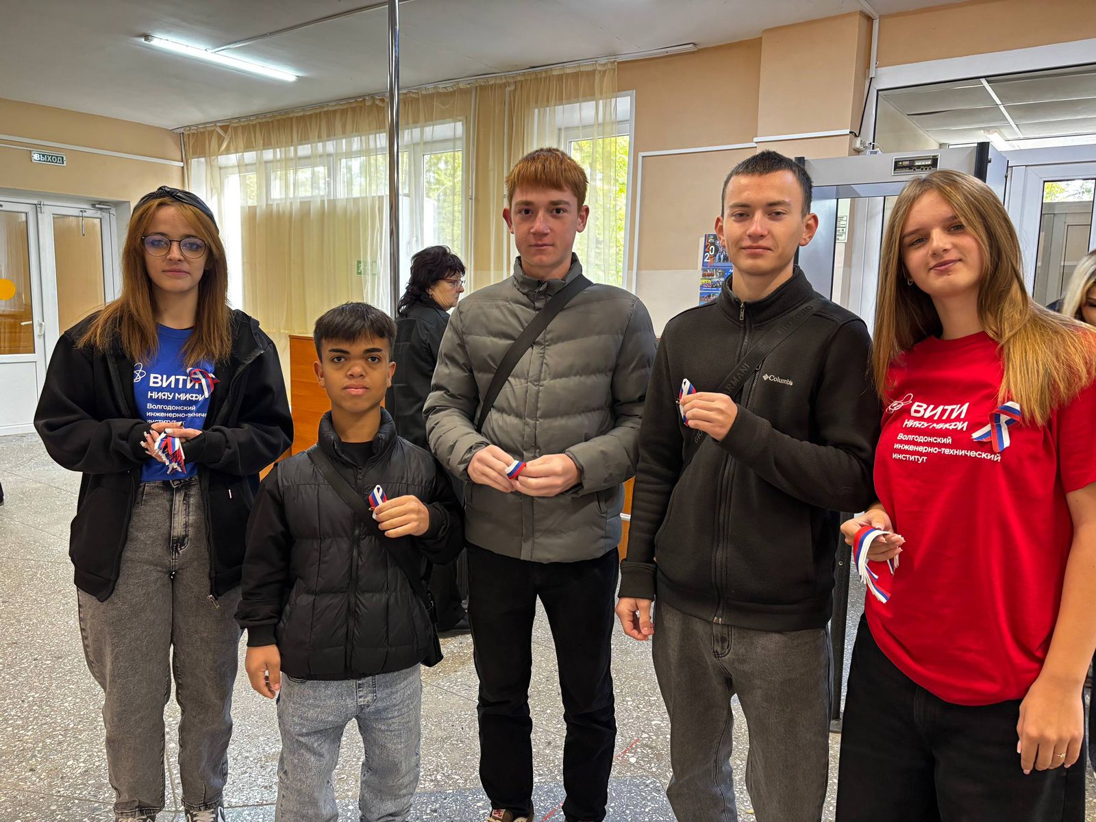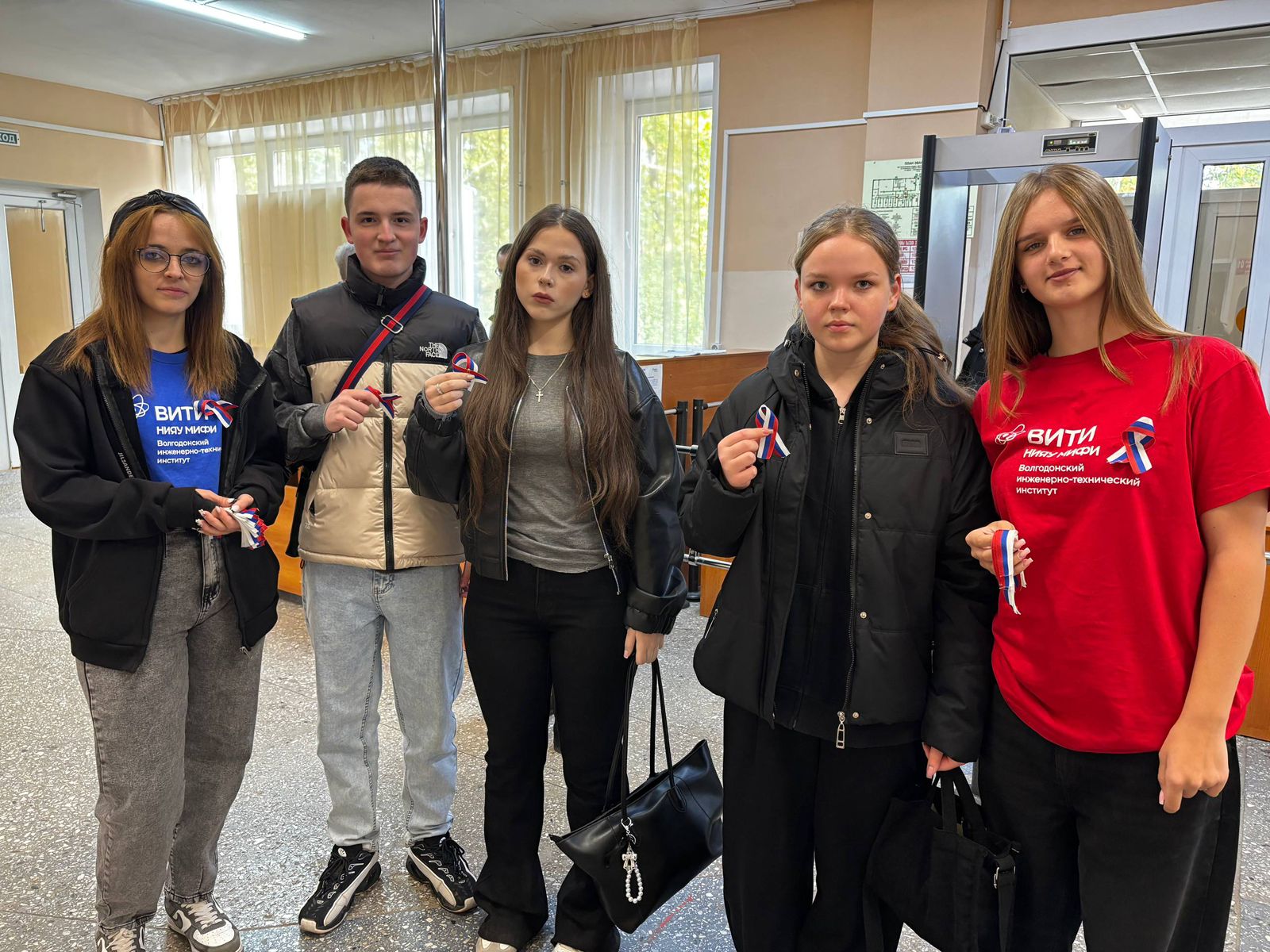 А волонтёры-активисты Всероссийского общественного движения «ВОЛОНТЁРЫ ПОБЕДЫ» техникума ВИТИ НИЯУ МИФИ провели акцию по раздаче лент-триколоров, символизирующих единство и могущество нашей страны.