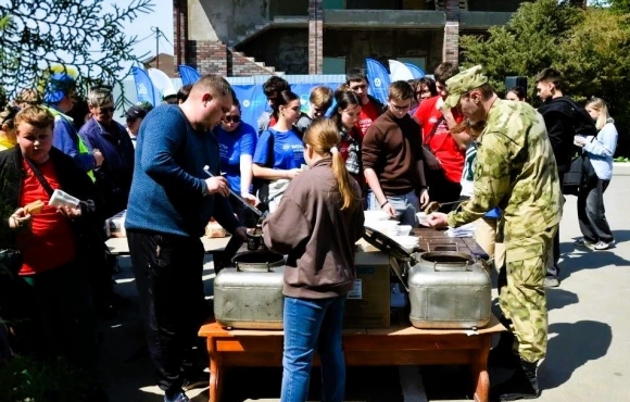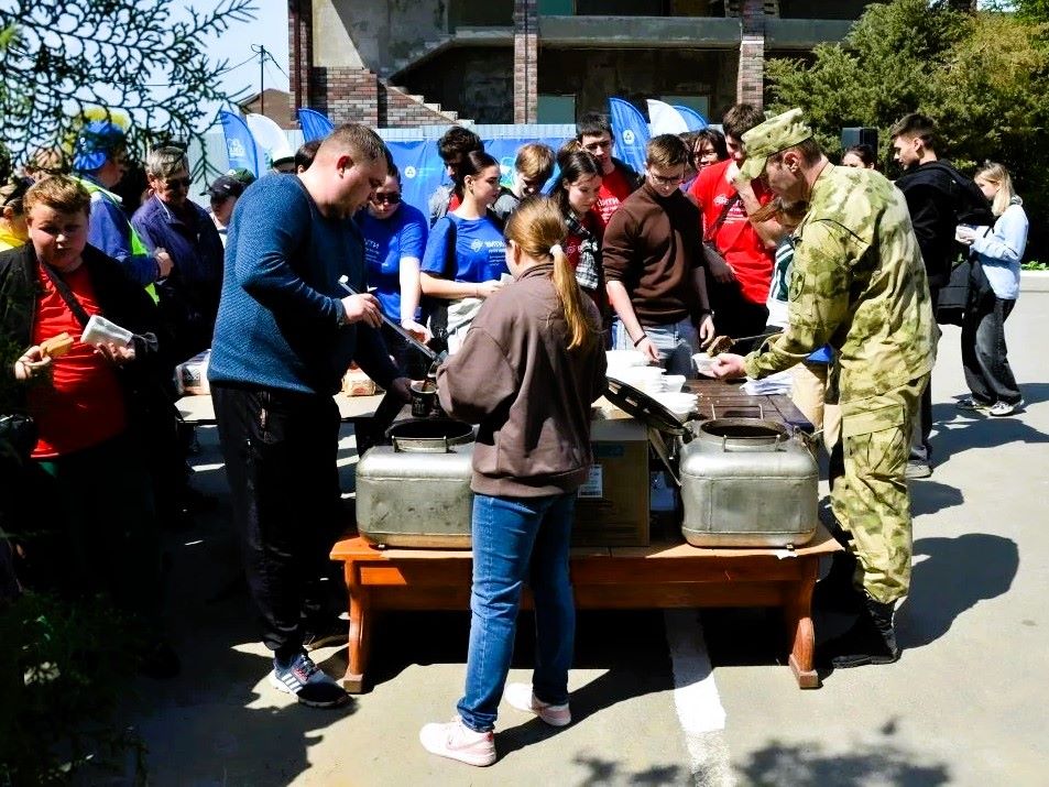 Организаторы субботника обеспечили всех участников необходимым инвентарем и вкусным обедом из полевой кухни.
