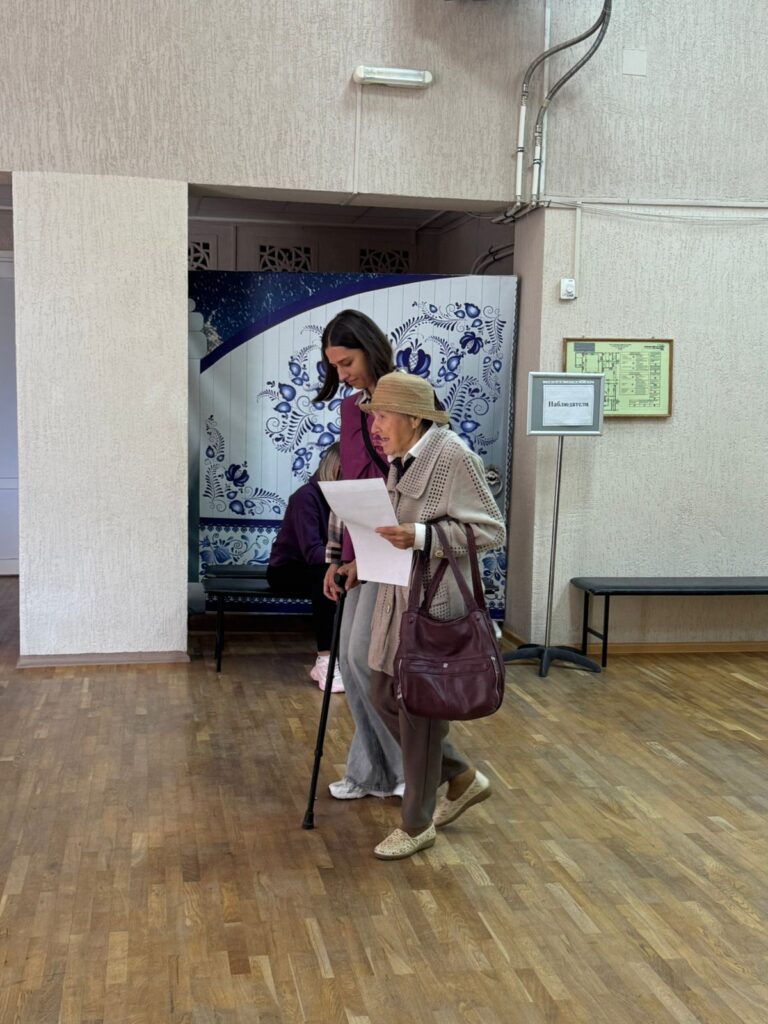 Среди избирателей были и маломобильные граждане, в почтенном возрасте, которым самим трудно было попасть на избирательный участок, и студенты ВИТИ НИЯУ МИФИ приняли участие в акции «Дорога на выборы», помогая таким гражданам добраться до места голосования.