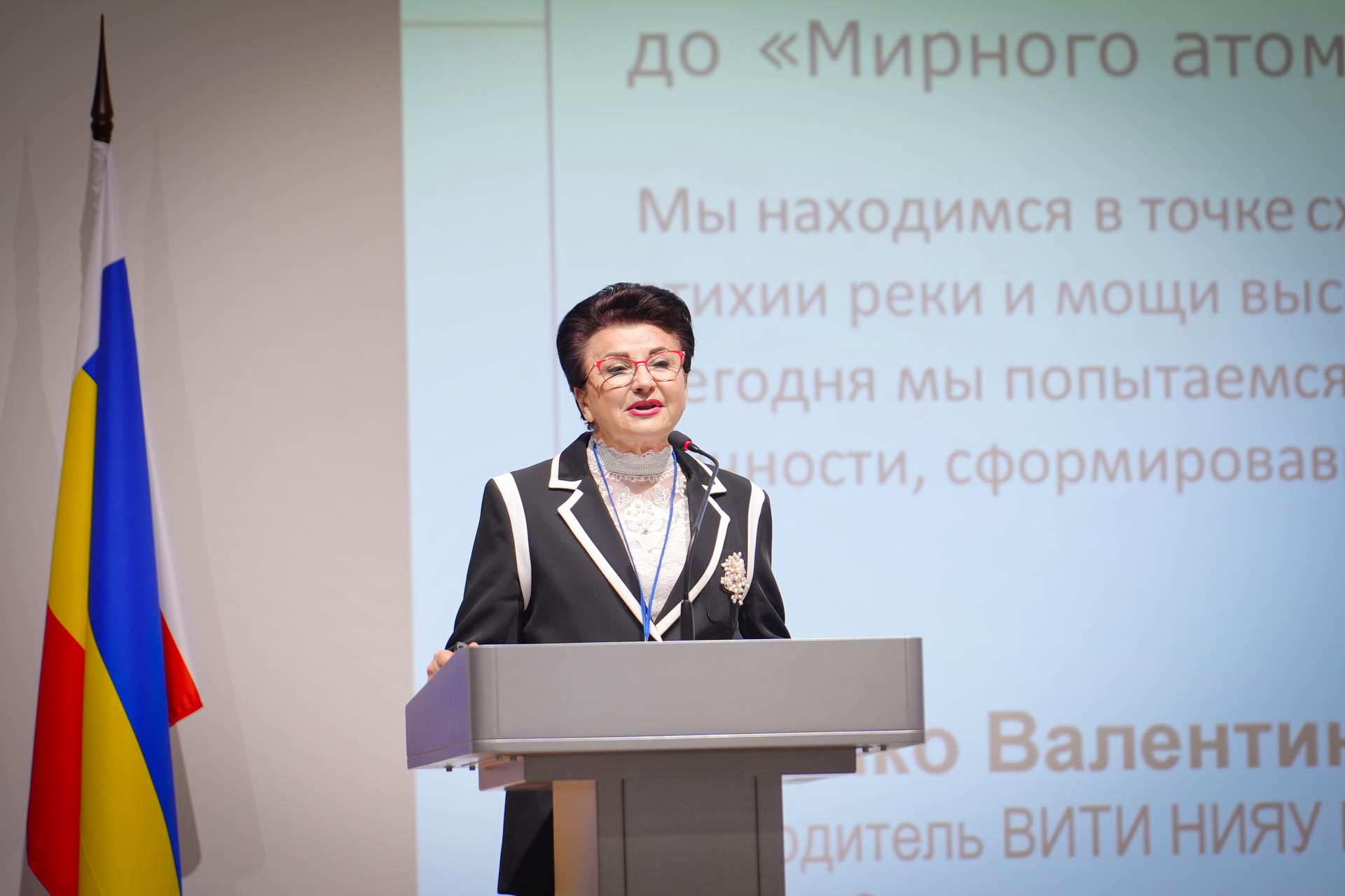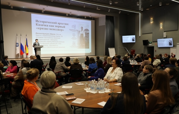Руководитель Волгодонского инженерно-технологического института НИЯУ МИФИ Валентина Руденко в своем выступлении остановилась на взаимосвязи социокультурного кода современной дончанки со своими предками - донскими казачками, которые во время военных походов мужей брали на себя полную ответственность за дом и семью, принимали непростые, но единственно верные решения.