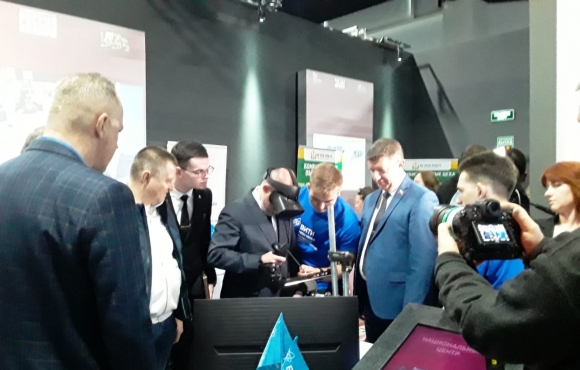 Особый интерес у посетителей экспозиции вызвал исследовательский лабораторный стенд для подготовки специалистов энергетических специальностей с входящим в его комплект шлемом виртуальной реальности.