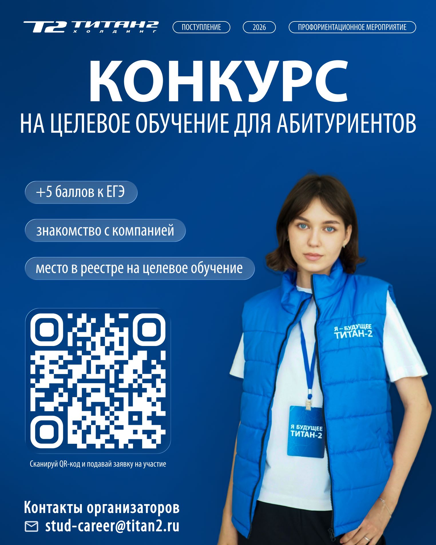 Холдинг «ТИТАН-2» объявляет старт профориентационного мероприятия среди абитуриентов, участие в котором даст дополнительные баллы при поступлении на целевое обучение!