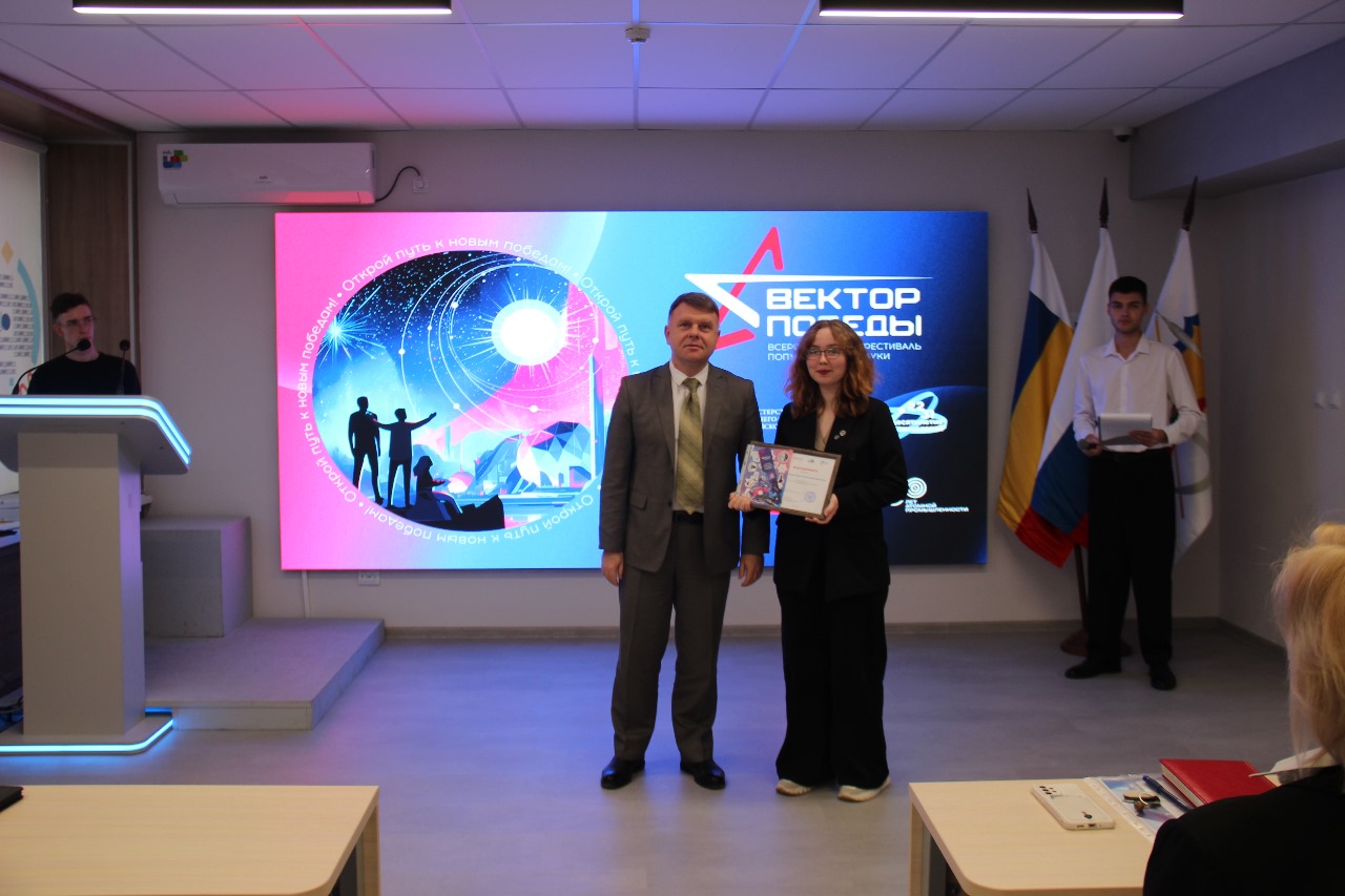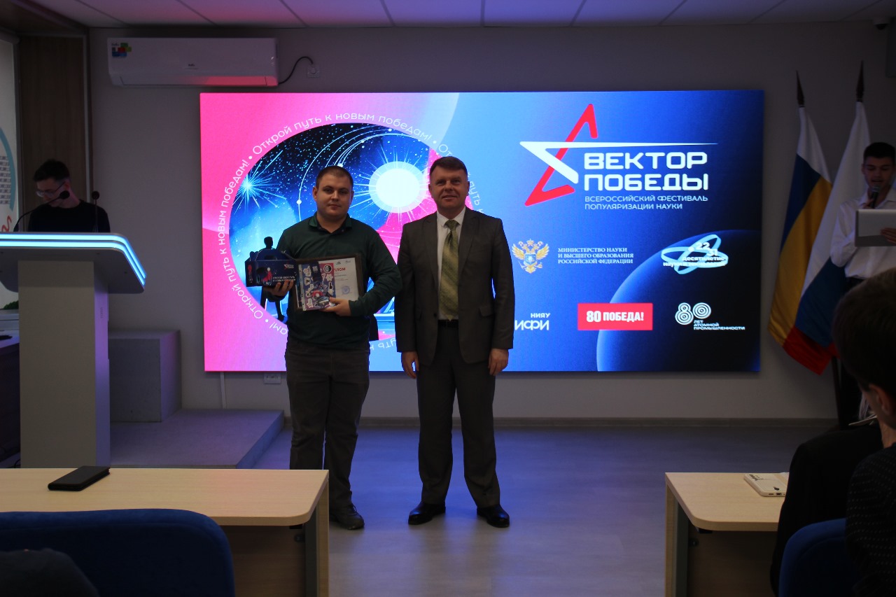 В этот же день состоялось торжественное награждение молодых ученых и студентов, принявших активное участие в мероприятиях Всероссийского Фестиваля популяризации науки «Вектор победы», организатором которого выступил НИЯУ МИФИ в рамках реализации инициатив государственной программы «Десятилетие науки и технологий».