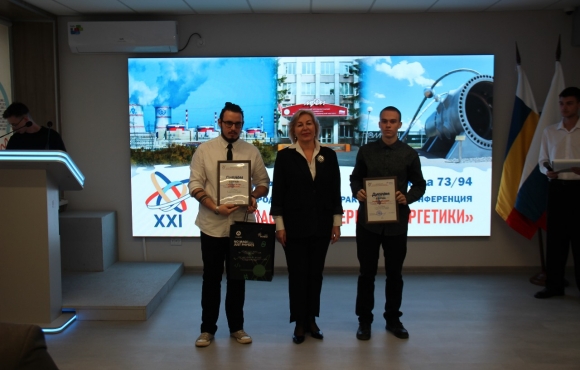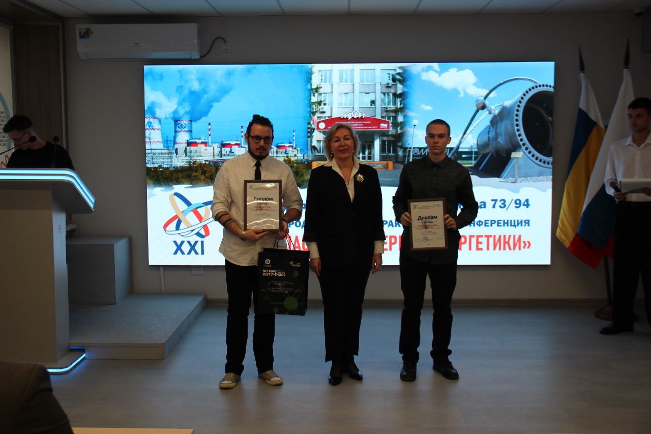 Дипломом II степени разделили: Силушин Игорь и Ромахов Дмитрий за доклад на тему «Разработка мобильного гибридного ядерного энергокомплекса на вагонном шасси» и Никитась Глеб и Филиппов Павел за работу «Анализ эффективности режимов продления кампании на энергоблоке ВВЭР-1000» награждаются: